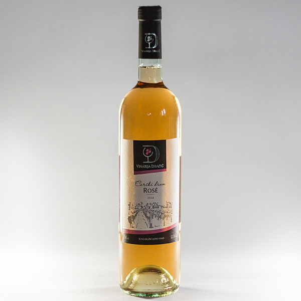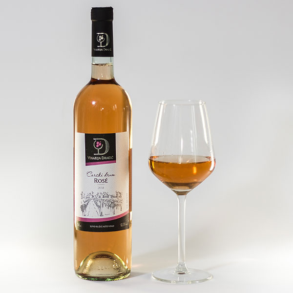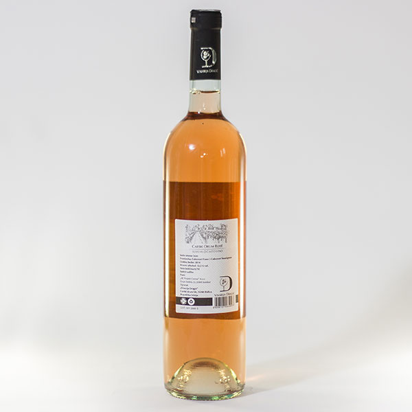 Opis: Suvo ruzicasto vino, sorta: Frankovka, Cabarnet Franc i Cabarnet Sauvignon, Stvarni alkohol 12.5% vol., sadrži sulfite