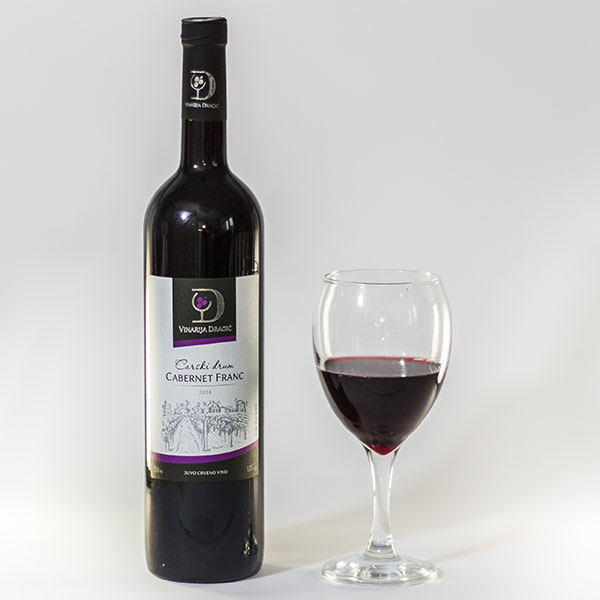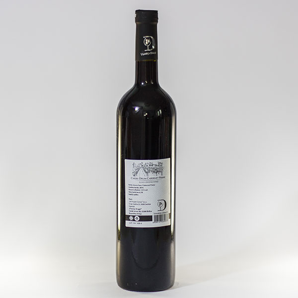 Opis: Suvo crveno vino, sorta: Cabarnet Franc, Stvarni alkohol 13% vol., sadrži sulfite