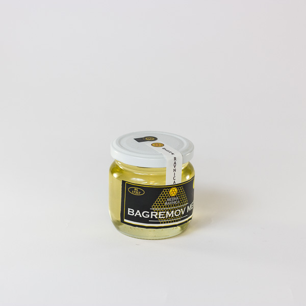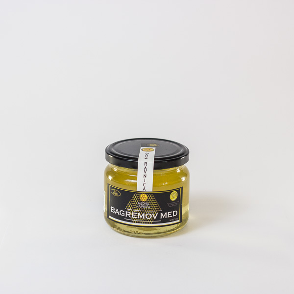 Bagremov med potiče od nektara cveta bagrema. Izrazito je svetao, a boja varira od zlatno žute do svetlo zelene i blagog je ukusa i mirisa. U njemu se nalaze vrlo značajne količine vitamina C i B, kalcijum, gvožđe i magnezijum. Sadrži vrlo malo polenovog praha. Ova vrsta meda odgovara većini ljudi, jer se njegova aroma praktično ne oseti u napitcima. Odličan je izbor za malu decu (tek od 1. godine života) i za osobe koje se oporavljaju nakon bolesti. Pomaže u jačanju imuniteta. Doprinosi procesu detoksikacije organizma. Pomaže kod regulacije probave. Smanjuje lučenje želudačne kiseline. Poboljšava i reguliše apetit. Zbog sedativnog učinka pomaže kod nesanice, nervoze i napetosti. Za smirenje pre spavanja popijte šoljicu čaja od matičnjaka s dodatkom kafene kašičice meda od bagrema. Ublažava simptome već nastalih plućnih bolesti. Pušačima je preporučljivo odmah po ustajanju pojesti supenu kašiku meda od bagrema.
