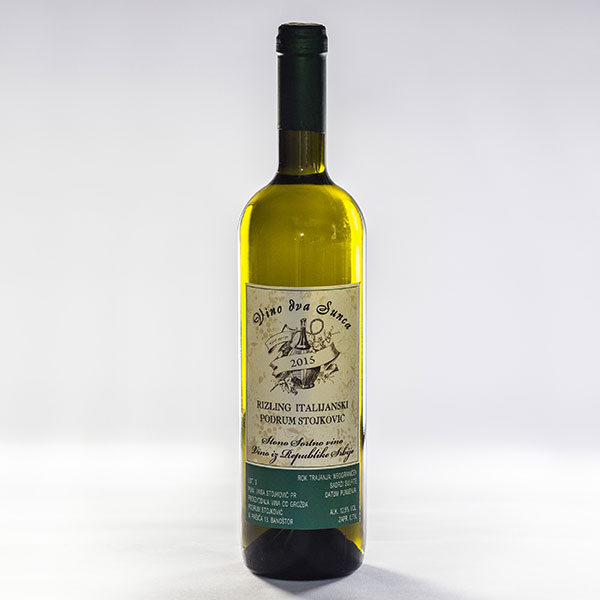 Opis: Stono sortno vino, sorta: Rizling italijanski, stvarni alkohol 12,5% vol.