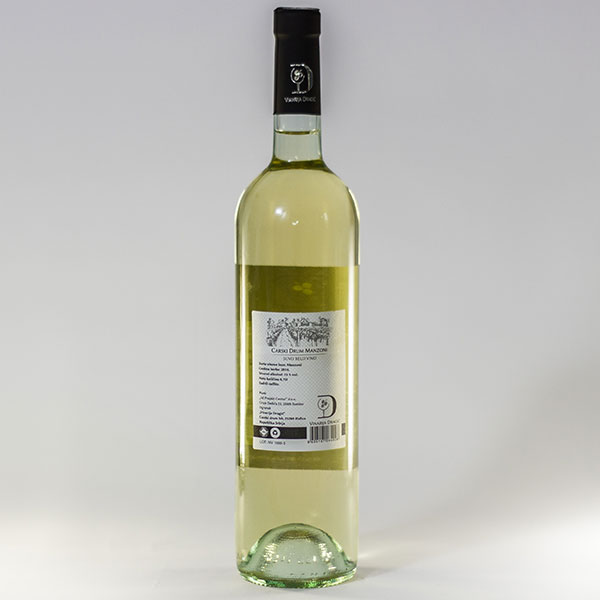 Opis: Suvo belo vino, sorta: Manzoni, stvarni alkohol 13% vol., sadrži sulfte